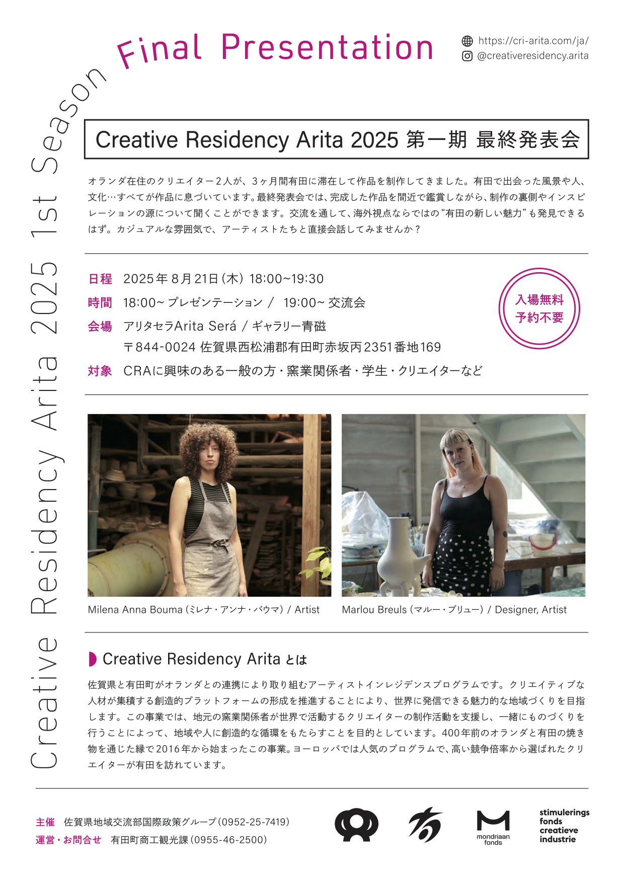 The final presentation by two overseas creators will be held at Gallery Seiji in Arita Sera.
